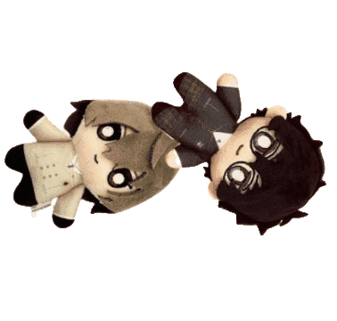 two stuffed animals are upside down on a white surface
