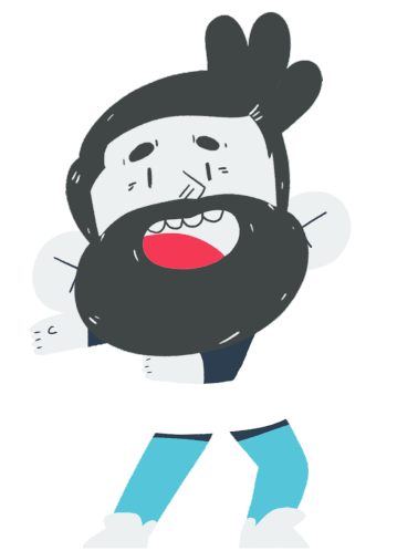 A happy cartoon man with a beard performs a lively shuffle dance, smiling broadly and moving energetically.