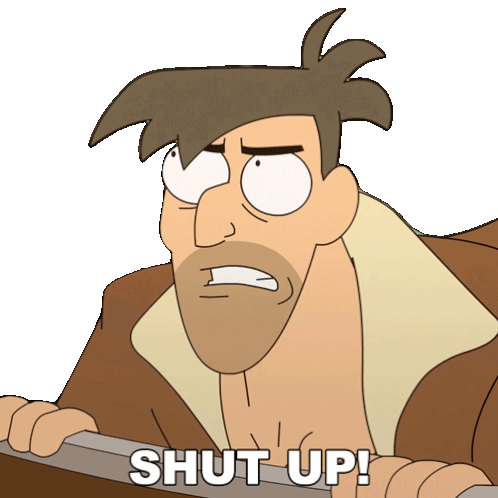 Rip Digman from Comedy Central's Digman! animated series tells someone to shut up with a frustrated expression.