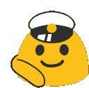 A cheerful yellow blob character wearing a captain's hat performs a crisp salute, then lowers its hand, and salutes again.