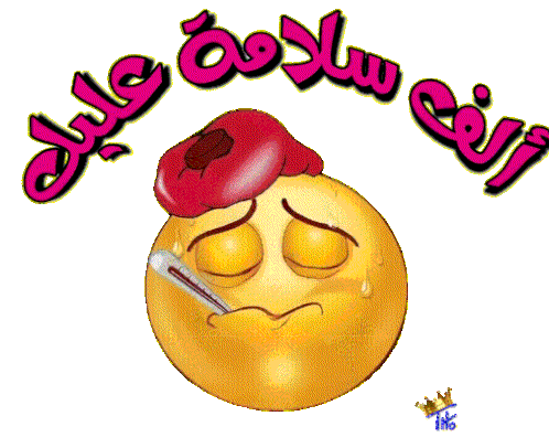 a cartoon smiley face with a thermometer in his mouth and a red glove on his head