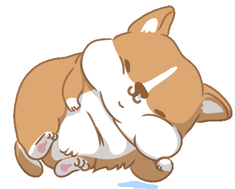 Ledroplet's cute Corgi lies on its back, looking sick and sad with a runny nose and teary eyes.