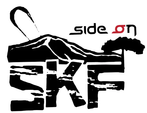 A person in dark attire performs a dynamic dance pose, bending backward and to the side, associated with Sideon Chile events.