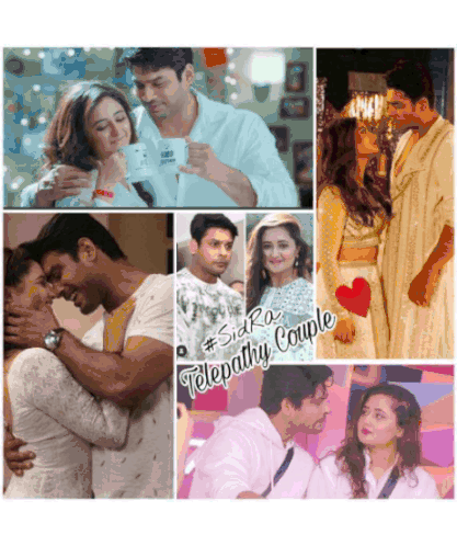 A loving collage of Sidharth Shukla and Rashami Desai, the #SidRa and #SiDRash Telepathy Couple, showing their affection.