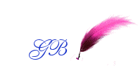 A pink quill pen elegantly writes the initials 'GB' in a flowing script, leaving a small ink blot on a white background.