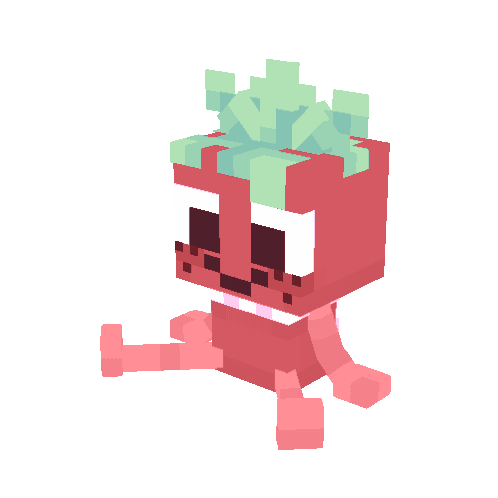 a pixel art drawing of a red box with green leaves coming out of it
