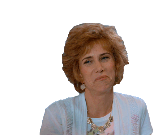 Kristen Wiig's iconic silly, nervous laugh from Barb And Star Go To Vista Del Mar. Her unique expression captures a moment of awkward amusement.