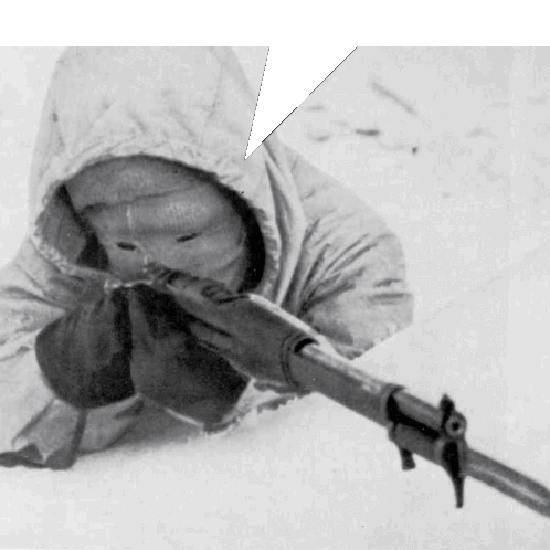 a black and white photo of a person holding a rifle in the snow