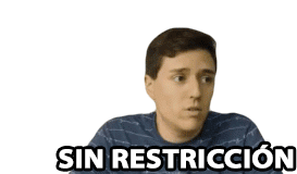 Nicolas Fischman, a young man with a surprised expression, says 'Sin Restricción' (Without Restriction), conveying freedom.