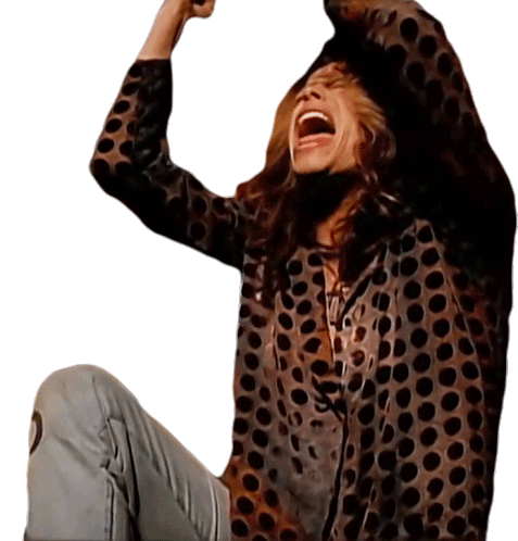 Steven Tyler, the iconic Aerosmith frontman, passionately sings and screams, captured in a dynamic moment wearing a polka dot shirt.