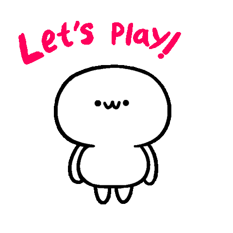 A cute, simple cartoon character invites to play with the text 'Let's Play!', perfect for starting fun activities.
