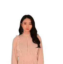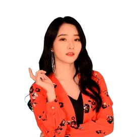 Siyeon from Dreamcatcher points and makes a finger heart gesture, playfully warning 'I'm watching you!' in this K-pop sticker.