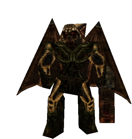 Animated Skaarj Warlord from Unreal Gold/Tournament, a retro game character laughing with menacing wings.