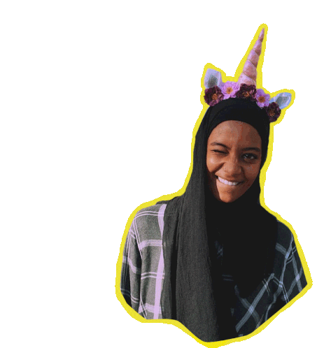 Amira (Hajar Brown) from Skam España blinks cutely, possibly with a unicorn or Holi theme.
