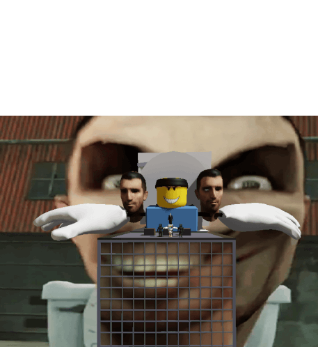 Skibidi Toilet brain rot meme featuring a Roblox head, G-Man faces, and a race car, all part of a bizarre scene.