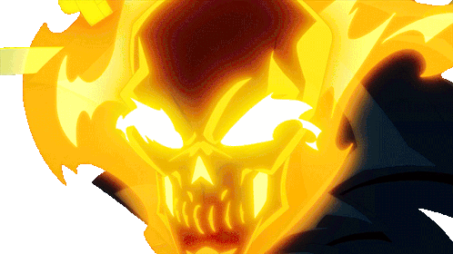 a cartoon illustration of a skull with flames coming out of it 's eyes