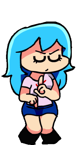 Sky from FNF transforms from her normal appearance to an angry, corrupted form with glowing red eyes.
