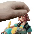 Animated sticker of a hand gently giving headpats to the character Skye, from Undercover Skye.