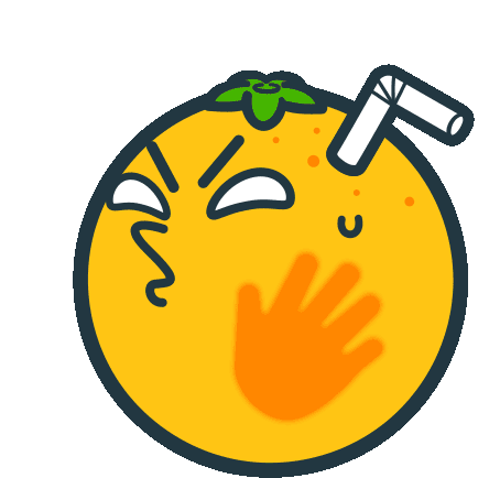 An animated sticker by Chow Hon Lam, featuring Kamoji Oren, a cute orange character, comically slapping itself in the face.