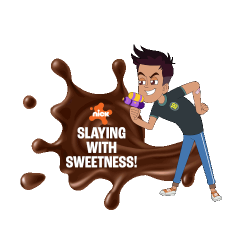 a cartoon of a boy holding an ice cream cone with the words slaying with sweetness behind him