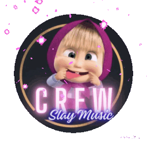 a logo for crew slay music with a cartoon character on it