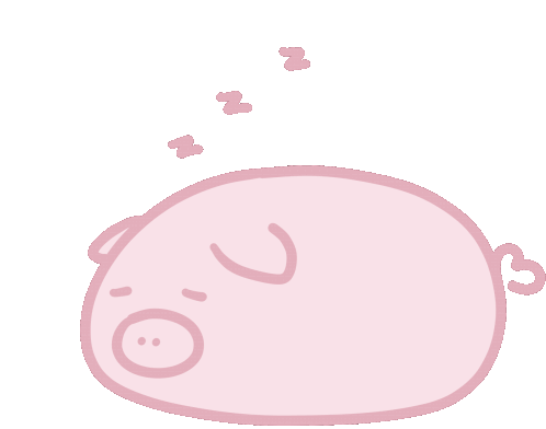 A cute pink piggy sleeping, waking up confused with question marks, then falling back asleep with Zzzs.