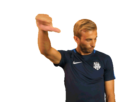 Football player Kuzmanovic from Slezskaopava gives a clear thumbs down, expressing disapproval or disappointment.