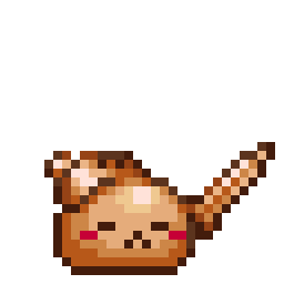 A cute, orange pixel art slime from Terraria is shown sleeping peacefully with rosy cheeks and a relaxed posture.