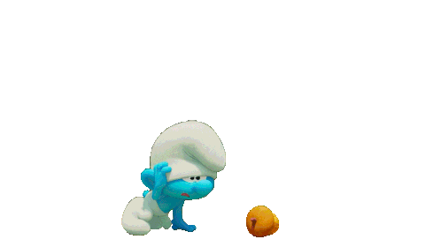 A Smurf character from the Smurfs movie is shown comically tripping and falling, mid-air.