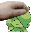 Slymee Sycneit, the cute Slime Girl, gets a gentle head pat, showing a happy, content expression.