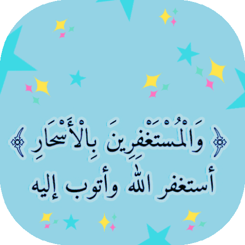 Arabic prayer "I seek forgiveness from Allah and repent to Him" with a heart and stars on a blue background.