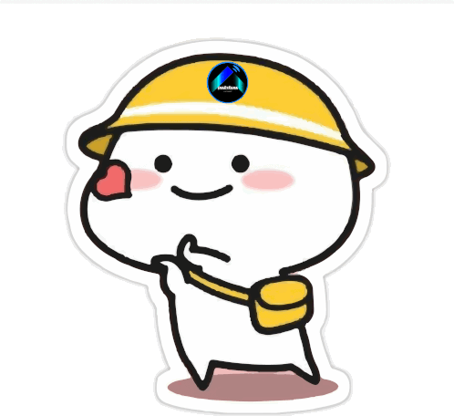 a sticker of a cartoon character wearing a hard hat and a backpack