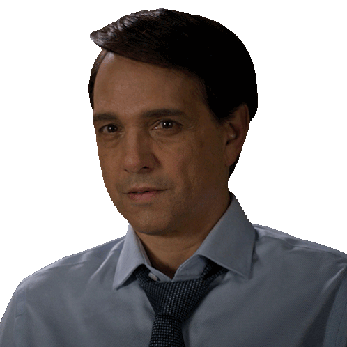 Daniel LaRusso (Ralph Macchio) from Cobra Kai looks at the camera with a disapproving 'shaking my head' expression.
