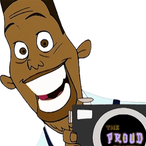 Oscar Proud from The Proud Family smiles broadly while holding a camera, ready to capture a moment.