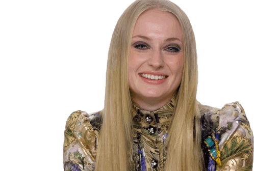 Sophie Turner, the acclaimed actress, smiles brightly and genuinely, looking directly at the camera with joy.