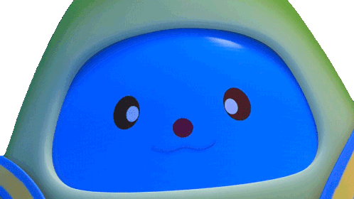 Tabbs, the blue cartoon character, smiles and sticks out its tongue in an expressive animation.