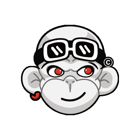 a cartoon monkey wearing goggles has a copyright symbol on his head