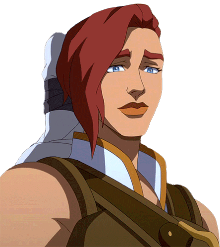 Teela from Masters of the Universe: Revelation gives a confident smirk. This animated sticker captures her iconic, slightly smug expression.