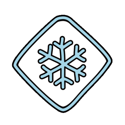 A clear drawing of a light blue snowflake, outlined in black, inside a light blue square outline.