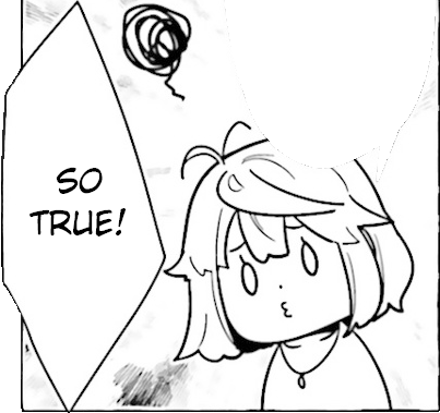 a black and white drawing of a girl with the words `` so true '' above her head .