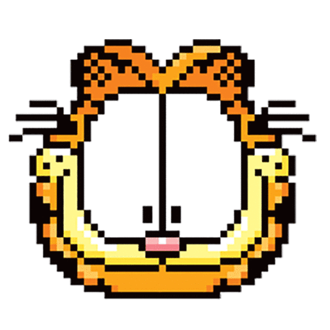 A pixel art Garfield with wide, staring eyes and a slightly open mouth, conveying a "so what" or "whatever" attitude.
