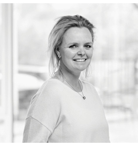 Social Friendz presents a smiling woman with dark hair, wearing a striped shirt in a black and white portrait.