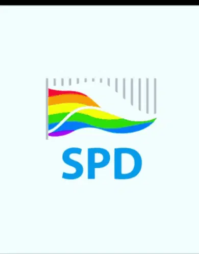 Animated sticker featuring the letters 'S', 'D' and 'Socialni Demokrati' in blue, culminating in the red 'SD' logo.