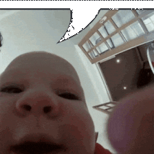 a close up of a baby 's face with a speech bubble above it that says ' i am '
