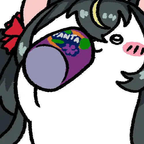 An animated pixel art sticker of Soda Sola, a woman in a purple dress and glasses, with a bouncy, jiggling movement.