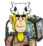 A Time Traveling Chimps Club (TTCC) NFT character, a chimp in a striped shirt and red tie, walks purposefully.