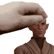 Solas, the elven mage from Dragon Age, receives a gentle head pat in this charming pixel art animation.