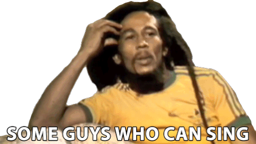 Legendary musician Robert Nesta Marley, also known as Bob Marley, with the caption 'SOME GUYS WHO CAN SING'.