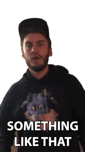 Casey Frey, wearing a black hoodie and cap, says 'Something Like That' with a slight head tilt and serious expression.