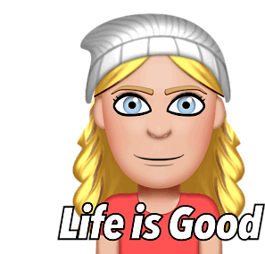 A cheerful blonde girl in a beanie and red shirt smiles, with the positive message 'Life is Good' displayed.